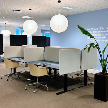 With flexible workstations and clear zones, we have created the opportunity for a much more dynamic way of working. The long, monotonous corridors with desks have been broken up, creating a completely different flow, and providing more space and light in the office. A pleasant place to work with a strong identity.