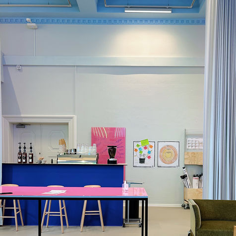 Vores bidrag omfattede at skabe et vildt loft med woweffekt. Placering af interaktive lysinstallationer for at skabe kontrast og tilføjelse af lette, farverige gardiner, der ikke kun skaber små rum, men også forbedrer akustikken.